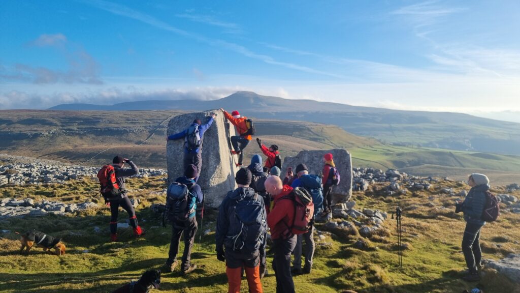 This year we did an 8 mile loop around beautiful Kingsdale stopping at the Cheese Press Stone, Yordas Cave and Thornton Force on our way before descending to the Marton Arms for a very nice Christmas Dinner.