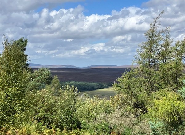 Crossing the road at Cowhouse Bank Car Park we then head along the track that leads along the top of the bank all the way back to the start point. There is a viewing point just beyond Cowhouse Bank Car Park, and as we make our way along the track the views gradually open up to the North, and as we get closer to the Trig Point that is the highest point on the walk, there are good views both across the moors to the north and towards the Wolds to the south.